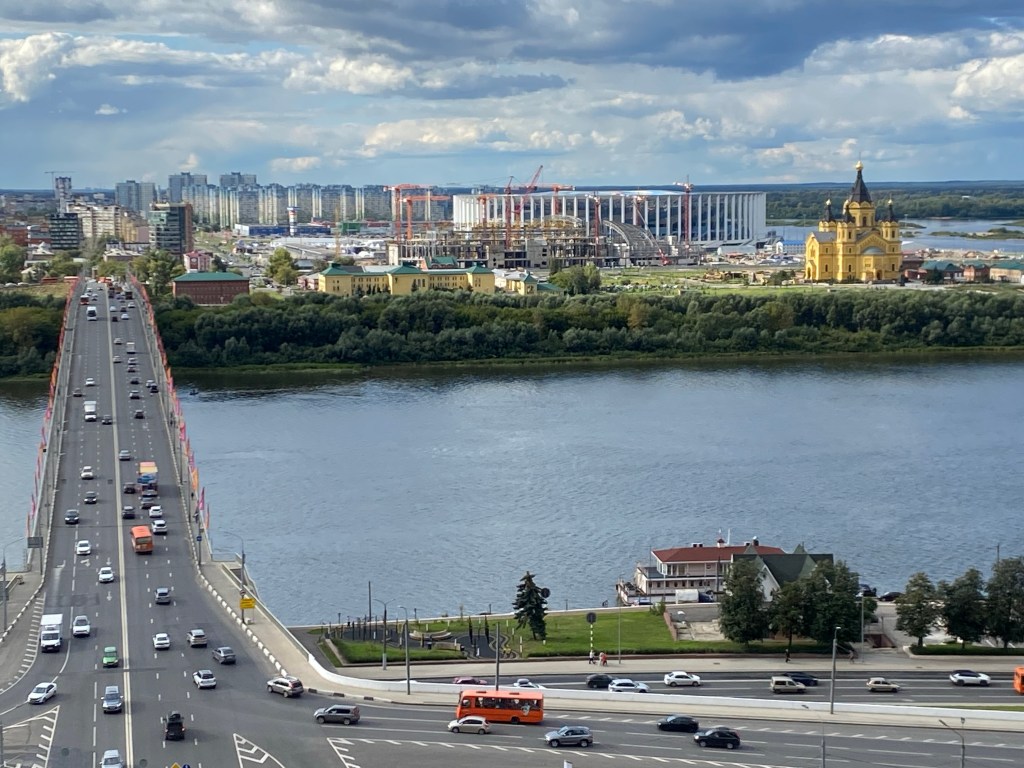 Es regnet morgens wieder und es ist kein Zuckerlecken, heute mit dem Rad zu fahren. Ich möchte mich auch nicht mehr den Trucks und dem anderen Verkehr auf der weiterhin schulterlosen Schnellstraße stellen. Leider gibt es keine Möglichkeit, mit dem Schiff auf der Oka oder dem Zug nach Nischn Novgorod zu kommen. So bleibt nur der Bus. Um 11 Uhr fährt ein größerer Bus, der auch Räder mitnehmen kann. Am Ticketschalter unterstützt mich Natalie sprachlich telefonisch. Und die Frau am Ticketschalter ist sehr hilfsbereit. Obwohl der Busfahrer zuerst störrisch ist, nimmt er mich und mein Rad dank dem Einsatz der Frau dann doch mit. Dreieinhalb Stunden und 170 km später steige ich in Novgorod aus dem Zug aus, wo mich Ivan Bessarab schon mit dem Fahrrad erwartet. Das hat Nathalie im Vorfeld organisiert. Ivan ist Linguist und Ethiker. Außer Russisch spricht er Englisch und Deutsch. Er zeigt mir viele Sehenswürdigkeiten der Stadt , die am Zusammenfluss von Oka und Wolga liegt. Um komfortabler vorwärts zu kommen, stellen wir in einer Wohnung seines Sohnes mein Gepäck ab. Er bringt mich in die Wohnung einer Schulfreundin, wo wir dann nach einem Abendessen übernachten. Allerdings ohne mein Gepäck. Das werde ich erst morgen wieder bekommen.