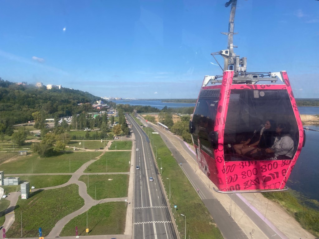 Sorry, habe wenig Zeit. Das wichtigste in Kurzform: Ivan bringt mich zur Seilbahn- schwebe mit der Seilbahn über die Wolga- herzliche Verabschiedung von Ivan- zuerst viel Verkehr- dann immer weniger- verpasse eine Abzweigung- zweimal heftiger Regen- verpasse die Fähre nach Lyskovo um Nasenlänge- 2 Stunden warten- Fähre bringt mich nach 40 Minuten Fahrt über die Wolga- Hotel gleich neben Anlegestelle – es ist schon dunkel