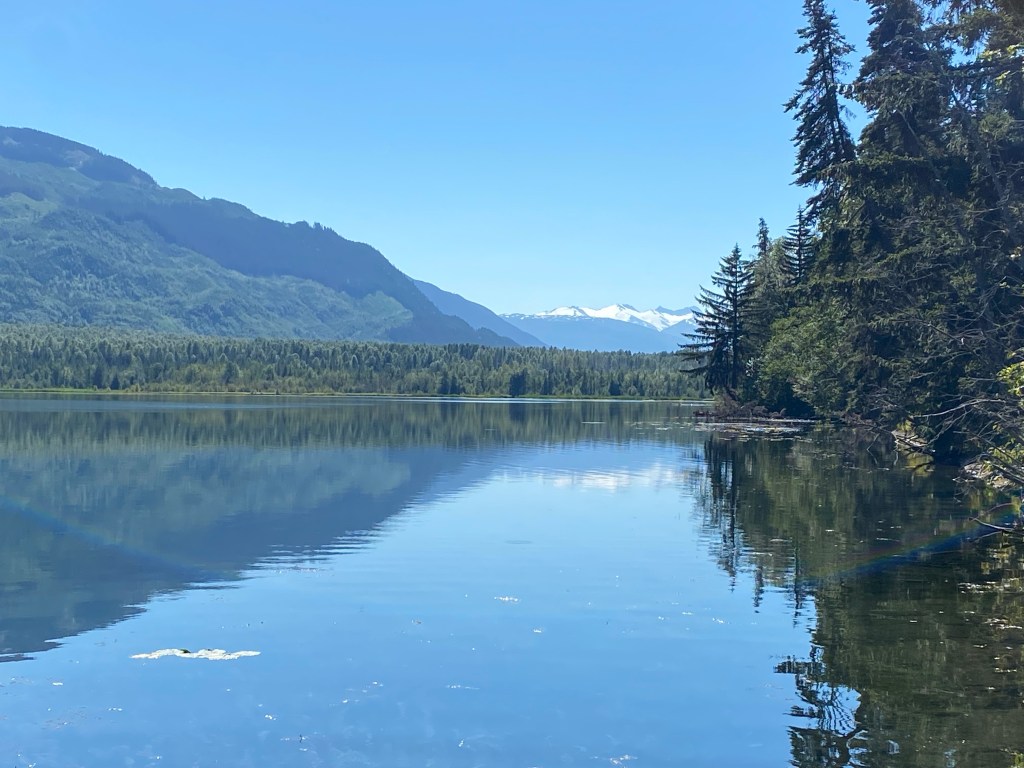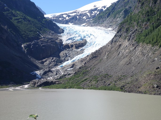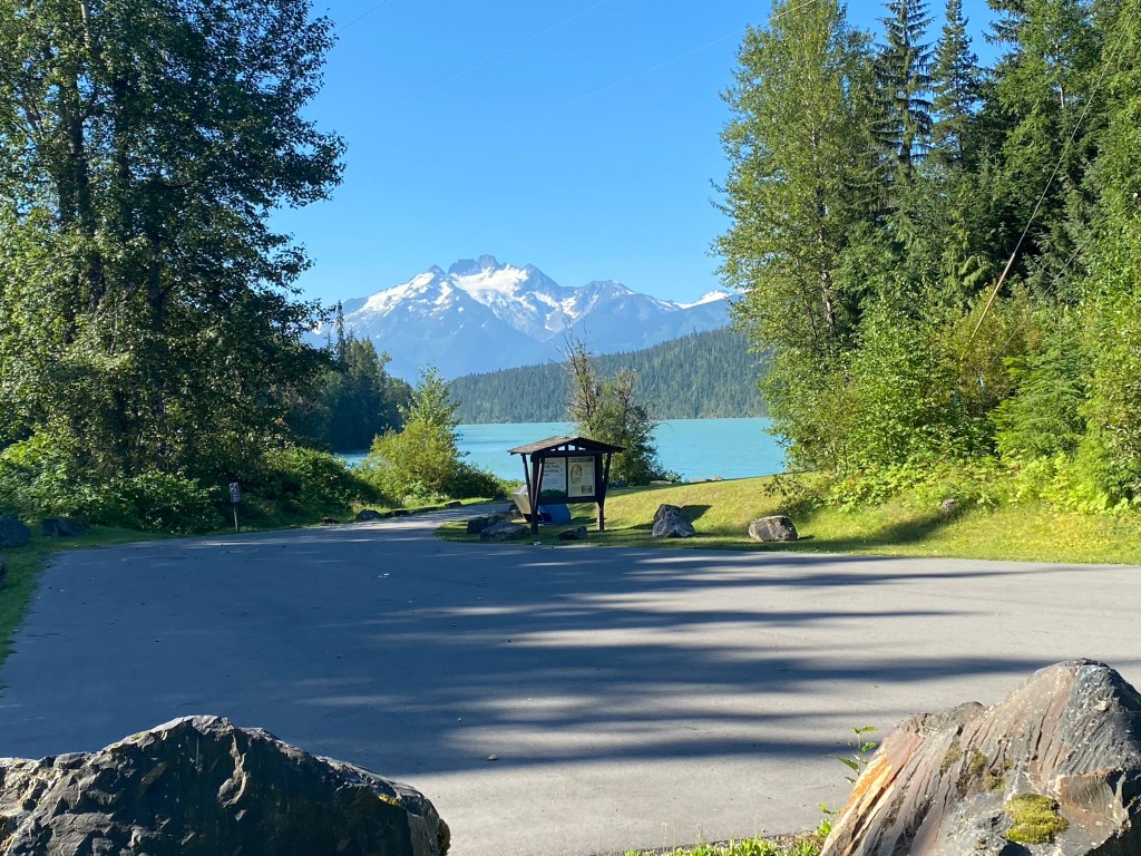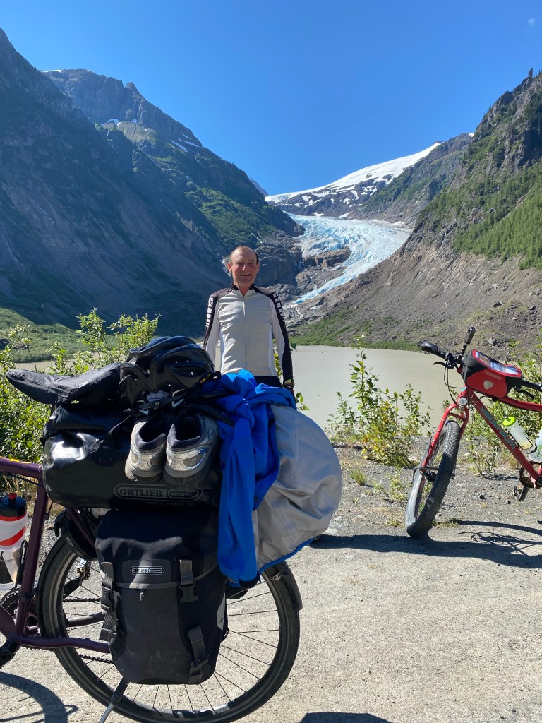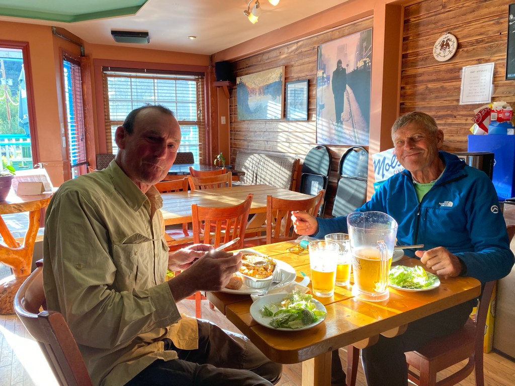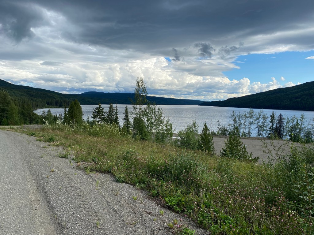 Die Gewalttour von gestern steckt noch in den Knochen. Nach dem Frühstück in unserer Herberge und Hamstereinkäufe an der Tankstelle geht es bei stark bedecktem Himmel auf die Strecke. Gleich haben wir einen sehr langen Anstieg zum Gnatpass vor uns. Oben angekommen ist es kalt und regnerisch. Wir ziehen volle Regenmontur an für die Abfahrt. Nachmittags wird es dann etwas wärmer und manchmal lugt sogar die Sonne hinter den Wolken hervor. Die wärmenden Strahlen schaffen Motivation für den zweiten langen Anstieg. Wir erreichen relativ früh den Etappenort Iskut. Dort gibt es zumindest eine Tankstelle mit Versorgungsmöglichkeit. 2 km weiter dann einen Campingplatz mit Cabins. Leider sind die wie üblich alle belegt. So schlagen wir wieder das Zelt auf. Willi kocht heute Nudeln in Tomatensoße mit eingelegten Würstchen. Anscheinend sollte es Internet geben. Doch vergebens versuchen wir, uns weltweite Netz zu kommen.