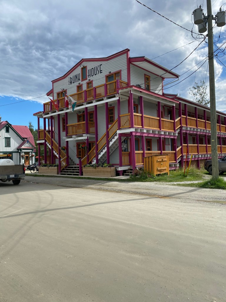 Im Eldorado Hotel genehmigen wir uns ein ausgiebiges Breakfast. Schließlich haben wir ein großes Kaloriendefizit auszugleichen. Nach dem Wäsche waschen und Fahrrad putzen haben wir noch Zeit, um diesen ungewöhnlichen, historischen Ort zu erkunden. Vieles erinnert noch an die Zeit der Goldwäscher und der Erschließung des Yukons. Vor allem die Geschichte der Schifffahrt auf diesem drittlängsten Fluss Nordamerika ist äußerst spannend. So die Geschichte des Untergangs der Princess Sophie am 2.Oktober 1918, bei dem alle 356 Passagiere bei einem Schneesturm ums Leben kamen. Wer die Romane von Jack London gelesen hat, fühlt sich in seine Geschichten hineinversetzt. Das Nachtleben in den Saloons soll es immer noch geben. Aber nicht für uns. Wir bereiten uns schon auf die nächsten Herausforderungen bei der Fahrt nach Whitehorse vor. Vermutlich wird es die kommenden Tage wieder schwer werden, Berichte ins Internet zu stellen. Spätestens in 5 Tagen, wenn wir Whitehorse erreicht haben, werde ich mich wieder melden.