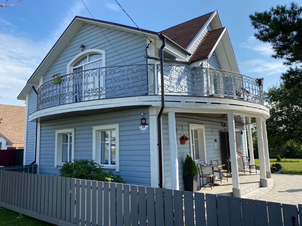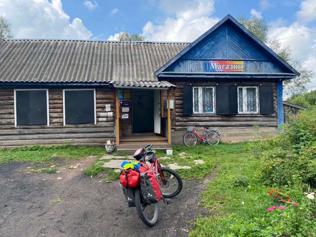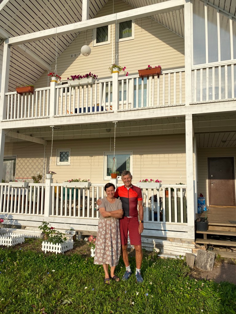 Überraschend schnell bin ich am Tagesziel in Surskie Zori, einem kleinen Feriendorf mit Blockhäusern für die Gäste. Eine halbe Stunde nach mir trifft Anatoli mit Familie ein.