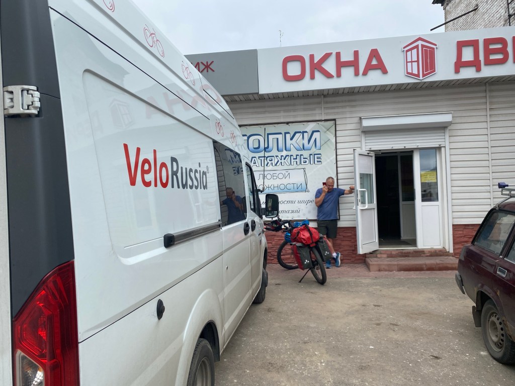 Es regnet morgens wieder und es ist kein Zuckerlecken, heute mit dem Rad zu fahren. Ich möchte mich auch nicht mehr den Trucks und dem anderen Verkehr auf der weiterhin schulterlosen Schnellstraße stellen. Leider gibt es keine Möglichkeit, mit dem Schiff auf der Oka oder dem Zug nach Nischn Novgorod zu kommen. So bleibt nur der Bus. Um 11 Uhr fährt ein größerer Bus, der auch Räder mitnehmen kann. Am Ticketschalter unterstützt mich Natalie sprachlich telefonisch. Und die Frau am Ticketschalter ist sehr hilfsbereit. Obwohl der Busfahrer zuerst störrisch ist, nimmt er mich und mein Rad dank dem Einsatz der Frau dann doch mit. Dreieinhalb Stunden und 170 km später steige ich in Novgorod aus dem Zug aus, wo mich Ivan Bessarab schon mit dem Fahrrad erwartet. Das hat Nathalie im Vorfeld organisiert. Ivan ist Linguist und Ethiker. Außer Russisch spricht er Englisch und Deutsch. Er zeigt mir viele Sehenswürdigkeiten der Stadt , die am Zusammenfluss von Oka und Wolga liegt. Um komfortabler vorwärts zu kommen, stellen wir in einer Wohnung seines Sohnes mein Gepäck ab. Er bringt mich in die Wohnung einer Schulfreundin, wo wir dann nach einem Abendessen übernachten. Allerdings ohne mein Gepäck. Das werde ich erst morgen wieder bekommen.