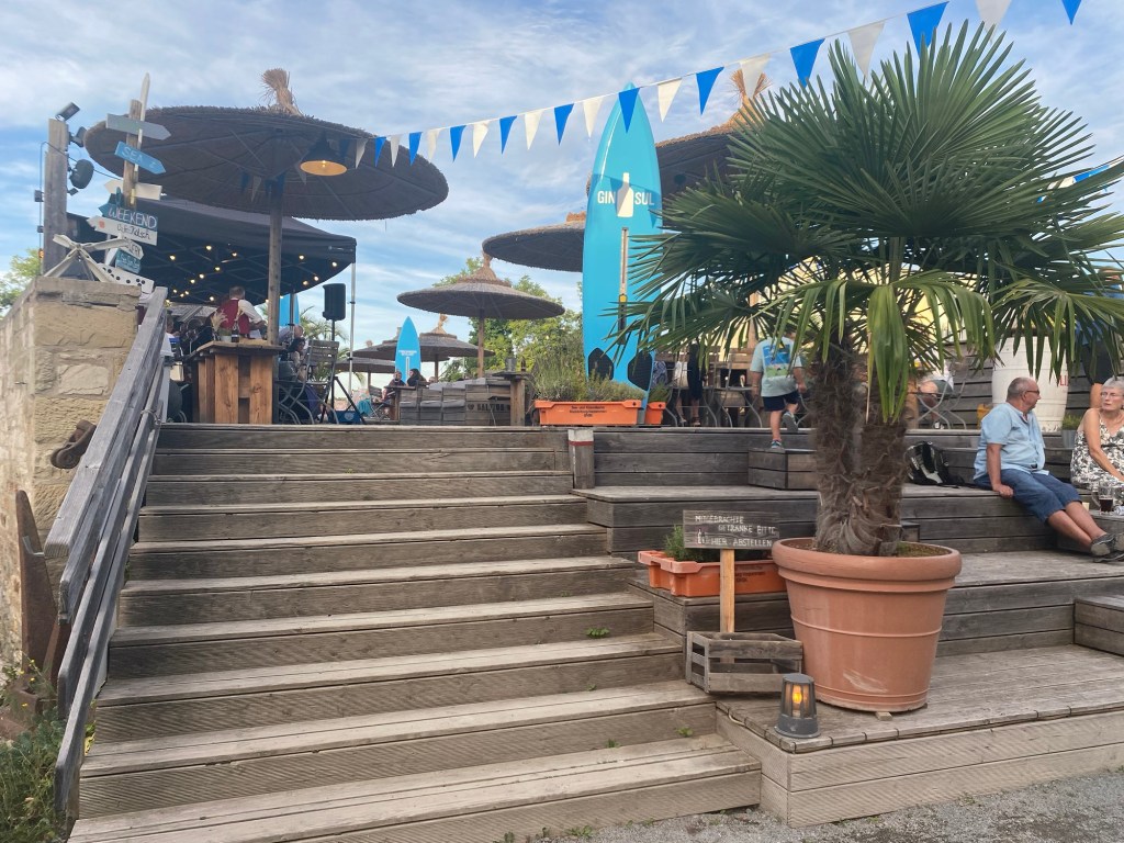 Wir hoffen, das das Skandinavien-Hoch weiter anhält und wir vom großen Regen verschont bleiben. Heute hatten wir schweißtreibende 28 Grad und es war auch abends noch so warm, um auf der Terrasse ein Bier zu trinken.