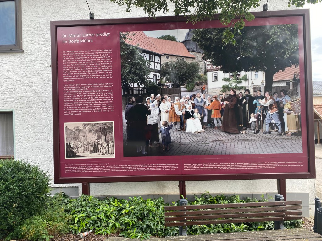 Unter dem Denkmal von Martin Luther Martin Luther predigt in seinem Stammort Möhra