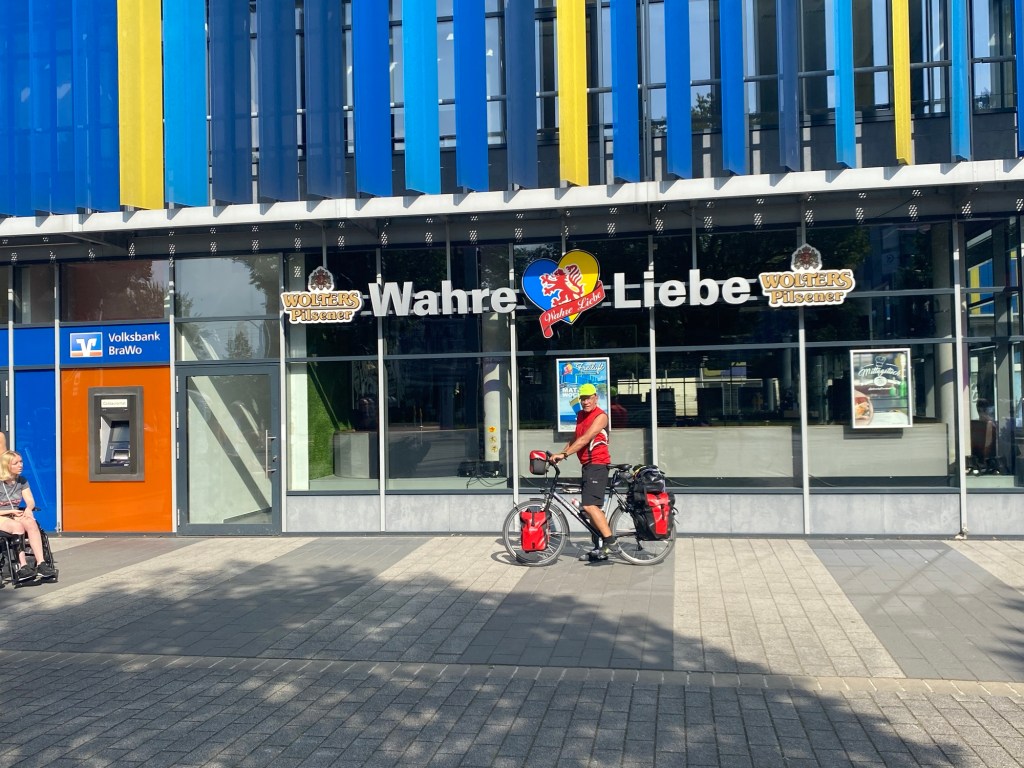 Die Übernachtung in der Pension war gut, das Frühstück befriedigend. Das Wetter heute morgen noch kühl, aber sonnig. Die erste Teilstrecke von 65 km bis Braunschweig lief prächtig. Gute Radwege, gute Oberfläche und spürbarer Rückenwind bei nur mässigen Steigungen verliehen uns heute fast Flügel. So konnten wir uns heute kurz nach Mittag eine ausgiebige Kaffeepause im schönen, geschichtsträchtigen Braunschweig gönnen.