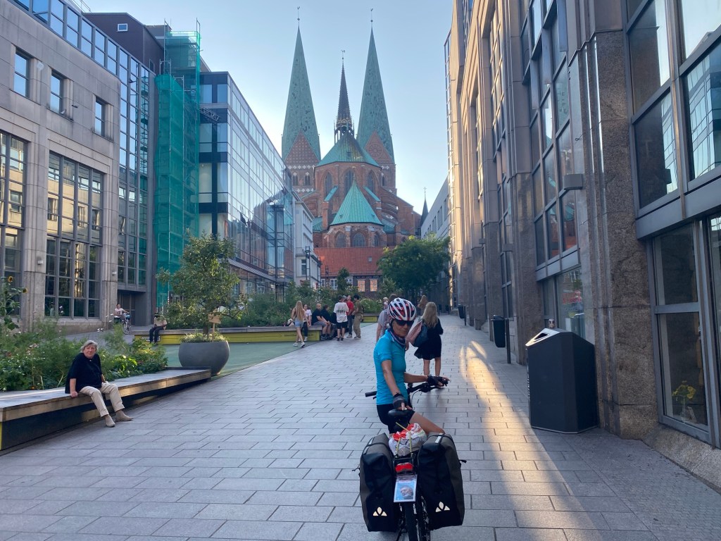 Schon kurz nach 18 Uhr sind wir schon in Lübeck und quartieren uns in einer schönen Jugendherberge ein. Ich erkunde noch mit Gento die interessante Hansestadt mit den Sehenswürdigkeiten. Dabei genießen wir natürlich auch noch bei einem Bier den lauen Sommerabend an einer Promenade.