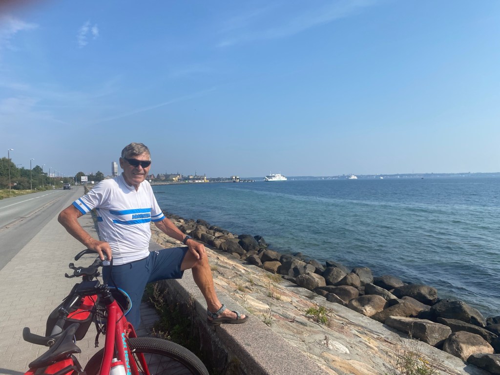 Nach einem erholsamen,tiefen Schlaf ging es nach dem Frühstück in Richtung Fehmarn. Da die Fehmarnbrücke zur Zeit saniert wird, werden Radfahrer mit einem Busshuttle auf die Insel gebracht. Wir hatten Glück und konnten als Letzte gerade noch im Bus unterkommen. Für Gento reichte es jedoch nicht mehr. Er hatte Probleme, den Weg zu finden. So musste wir fast 1,5 Stunden warten, bis er mit dem nächsten Bus ankam. In etwas mehr als zwei 2 Stunden durchquerten wir die Insel Fehmarn, bevor es in Puttgarden auf die Fähre nach Dänemark ging. In gut einer Stunde später legten wir in Rödby/Dänemark an. Der erste längere Radweg führte uns auf einem schattigen, schlotterigen kleinen Weg nach Maribo, unserem heutigen Etappenziel.