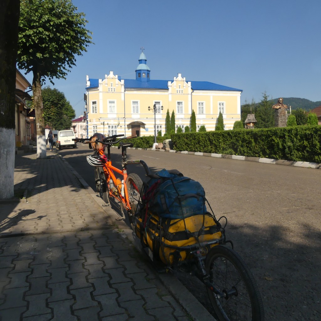 Der zweite Anstieg ist eine Kopie des ersten, nur nicht ganz so lang, aber ebenso schlecht vom Untergrund her zu befahren. Eigentlich wollten wir noch einen kleinen Umweg zu einer Holzkirche machen, doch wir sind ziemlich platt und es ist auch schon ziemlich spät. Nach kurzer Suche finden wir ein ansprechendes Hotel in unserem Zielort Velkyi Bychkiv.